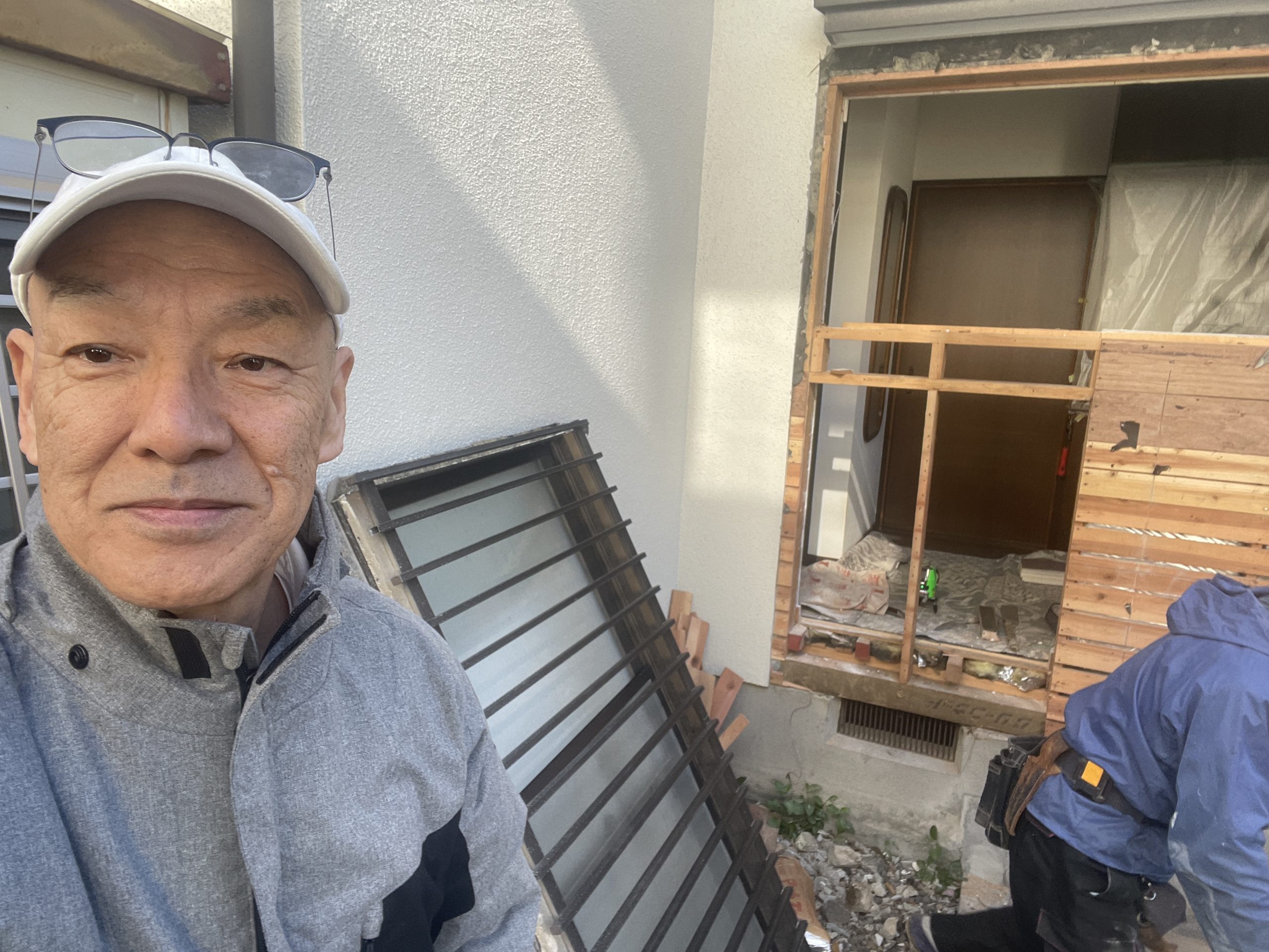 既存窓を撤去し、その後、開口部を作り直しています。