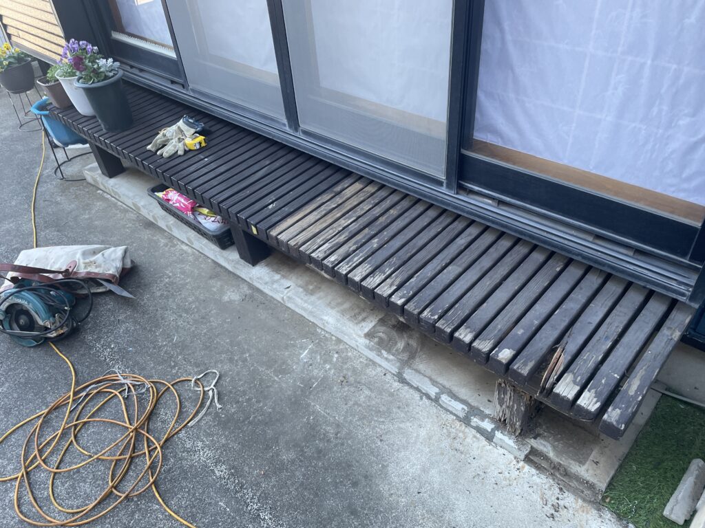 本日は先日塗り替えを終えたF様邸で、お約束の木製濡れ縁の改造(切断)を行いました。
