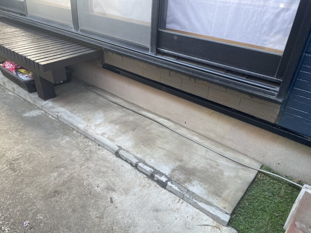 じつは塗り替え前、この濡れ縁のとなりでシロアリが見つかりお家全体の床下を含め、家の周りに防蟻作業を行いました。