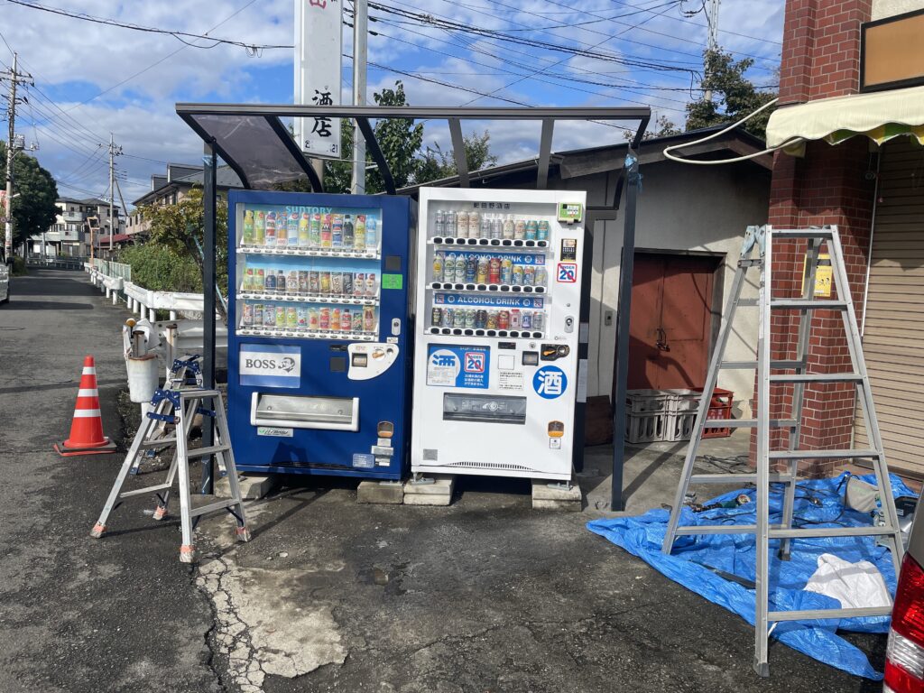 所沢市の酒屋さんで、自販機にテラス屋根の取り付けを行いましたのでご紹介します。