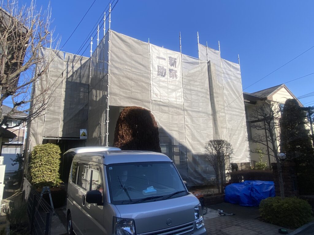 足場が組み終わり、いよいよ本格的な外壁塗装工事が始まります。