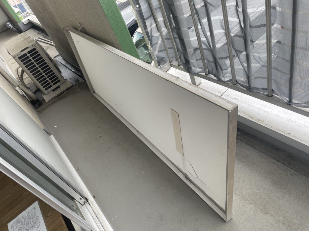 本日は市内のマンションでベランダの間仕切り板の交換修理を行いました。正式には避難隔て板と呼ばれるものですが、先日の強風で外れてしまいパネルも割れてしまいました。