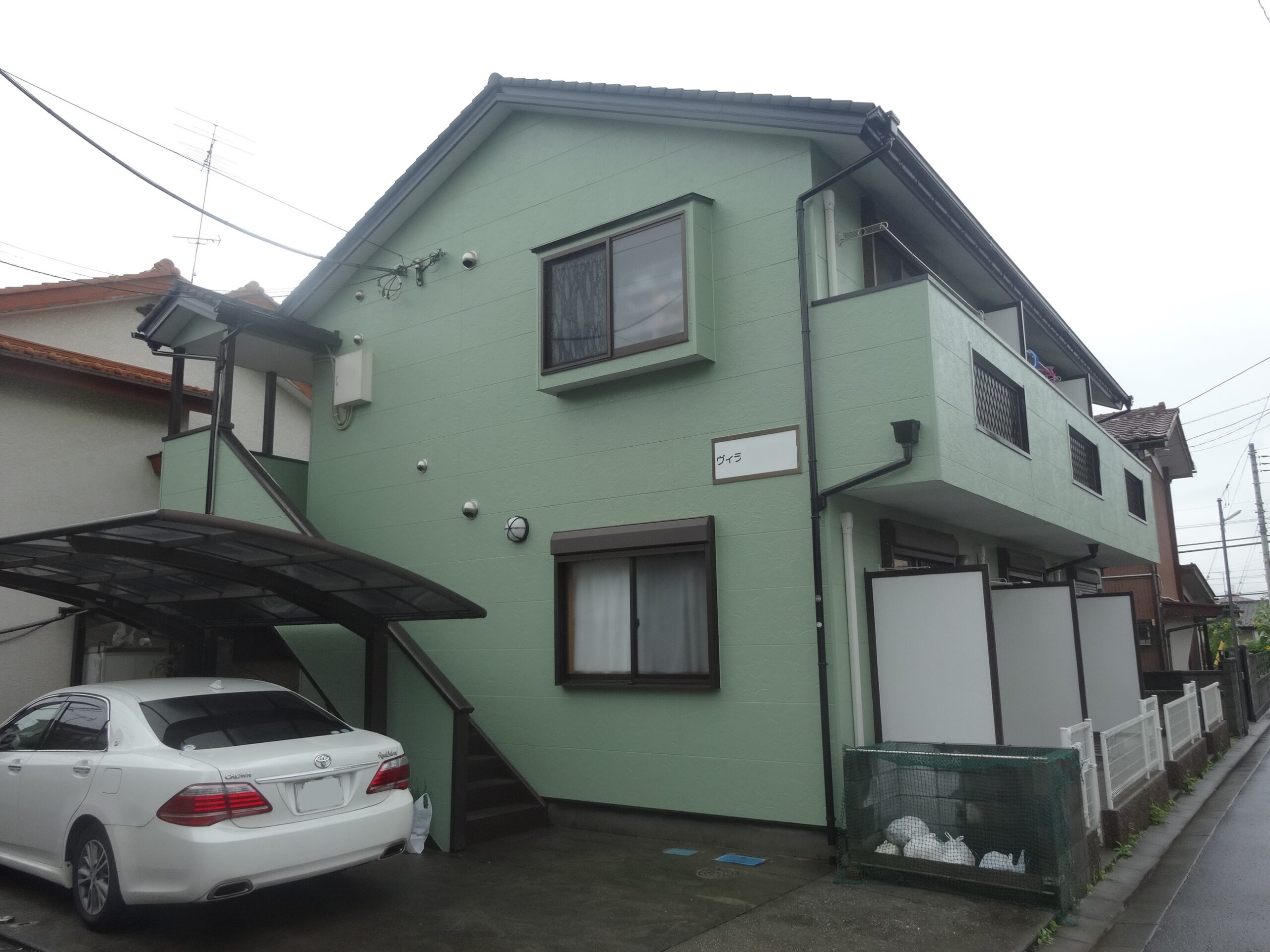 アパート塗装所沢市山口 ヴィラS 経年で色褪せたアパートを高耐候塗料で塗り替えしました。施工前写真はこちら!そして施工後!きれいになりました!塗替えをお考えの方は、ぜひ塗装職人専門店の一新助家をお尋ねください。無料お見積はこちら